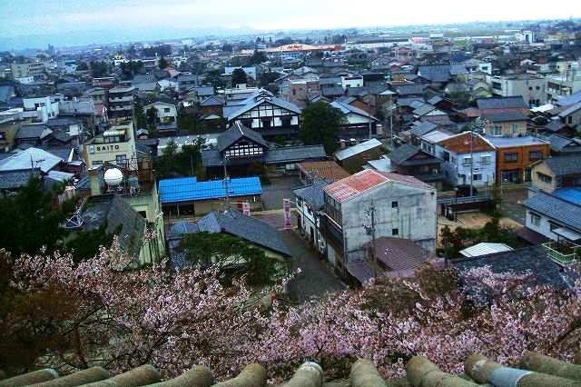 ![]() 現存最古の天守とも呼ばれるが、犬山城天守との論争がある。 屋根瓦には笏谷石製の石瓦が寒冷地であるという気候事情により葺かれている。 笏谷石(しゃくだにいし)という金鋸で切れるほど軟らかい石材 |