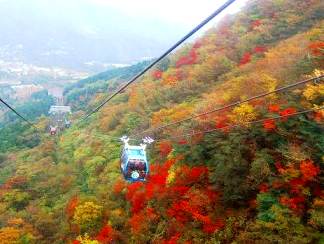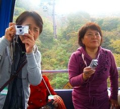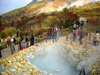 ![]() 早雲山(ソウウンザン)に到着し、今度はロープウェイで大涌谷へ(7分) 標高が上がると、山肌が化粧しだして綺麗でした!Yasukoさん撮影 |