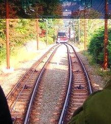 ![]() 強羅からケイブルカーで早雲山へ(10分) ケーブルカー内の様子 すれ違ったところ |