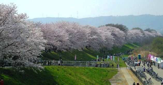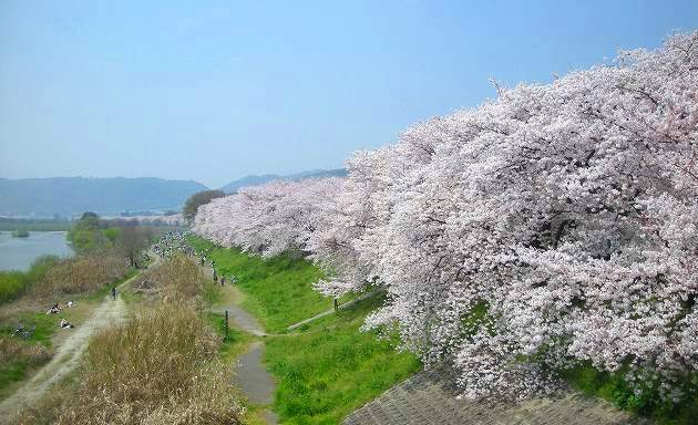 ![]() 背割堤の桜(木津川・淀川の間にあります) Yasukoさん撮影 |