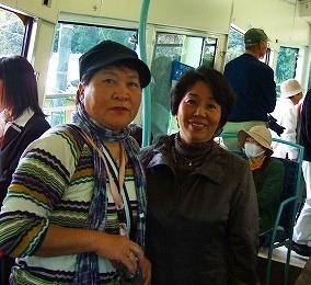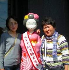 ![]() おたべ人形と記念写真・・どちらがきれい?(聞かんといてーな) 工場見学!作りたての試食もあり美味しかったです。 |