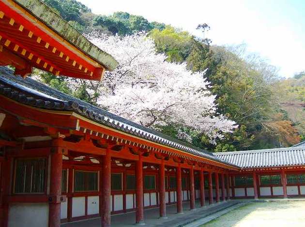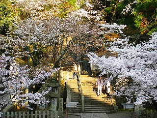 八幡社の朱の回廊と桜 Yasukoさん撮影 |