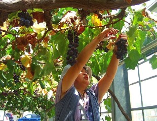 ![]() 50メートル先に巨峰狩りのハウス・・・猛暑で甘い!が粒が少ないわ! |