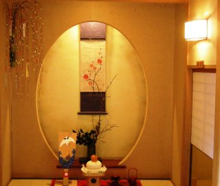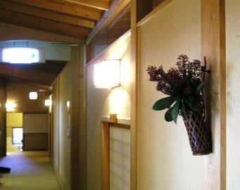 ![]() ![]() 迷路の廊下を歩き、部屋には茶室と同じで腰を折って入ります・・所々に花が! |