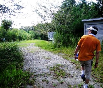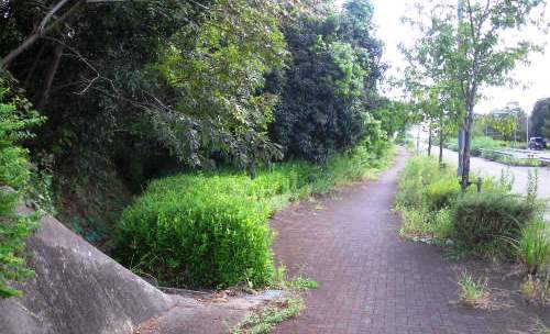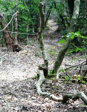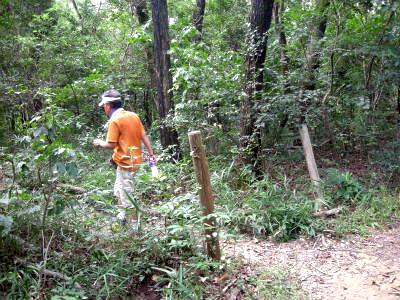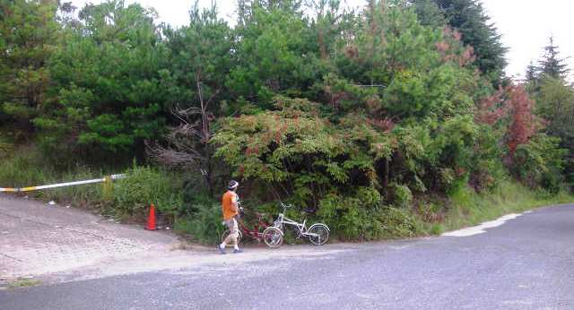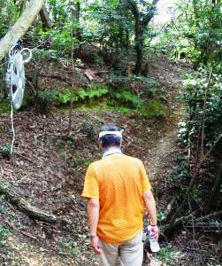 ![]() 道路に平行して路が続くので一旦外へ退避(Oosima氏は蚊で足がぶくぶくだ) |