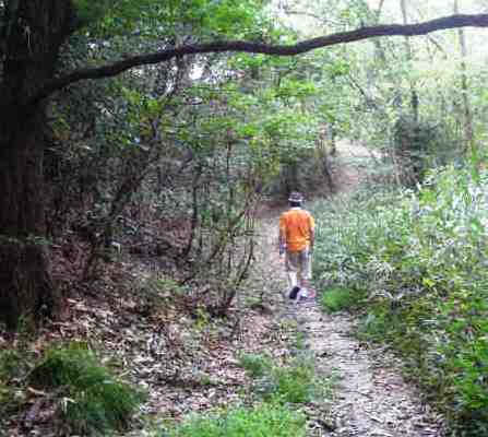 ![]() また分かれ道かー。暑さですこし疲れも出てきた。はっきり続く右へ行く・・ 突然外人さんのマウンテンバイクに出くわし驚く!「びっくりした」と日本語が帰ってきた。 |