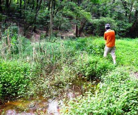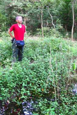 ![]() 湿地帯への入口を見つけ足を進める。立ち止まるとやぶ蚊が一斉に襲ってくる。 |