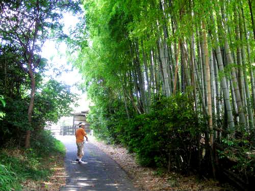 ![]() 小路を抜けたT路を右へ行くと、民家と竹藪を見つけたがどうも違う。後戻りして左へ行く。 |