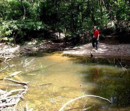 ![]() 「おたまの池」を見つけたが大きな水たまりではないか?カエルとザリガニが逃げる。 |