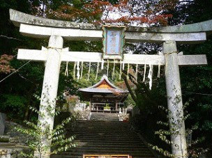 石座(いわくら)神社:京都市左京区岩倉(岩倉実相院北側) ![]() 左)鳥居の奥に拝殿が見える 右)本殿:境内には神殿がなく自然の巨石を神石とする古代祭祀を伝える。 |
