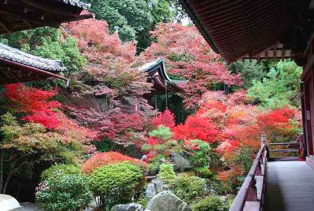 ![]() 実相院:床もみじで有名(ピカピカに磨かれた板張りの床に紅葉が映りこむ) |