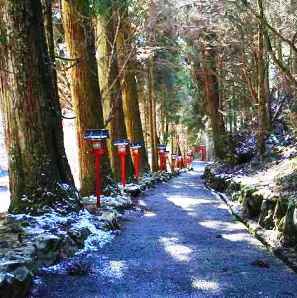 ![]() 水占斉庭(みずうらゆにわ)の御神水浸 奥の宮参道 |
