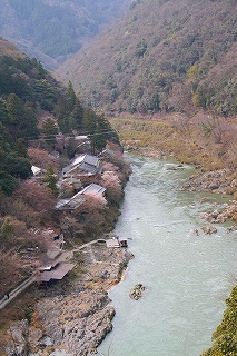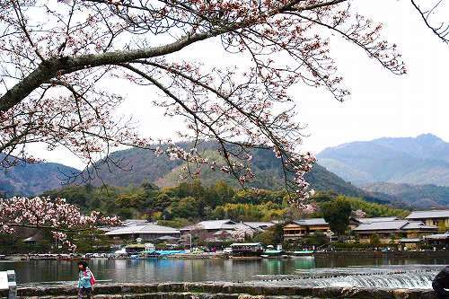 亀山地区では保津川の対岸に山桜(?)もありました。嵐山は相変わらず多くの人でにぎわっています。 |