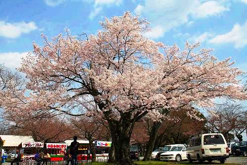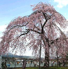 ![]() この地の岩盤が固く、深く根を張れないため樹高が低い。「花(鼻)が低い」ということから「お多福桜」とも。 |