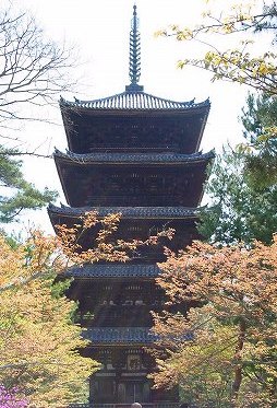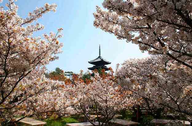 ![]() 五重塔と仁王像*御室(おむろ)桜は、京都でもっとも遅咲きの桜と言われる。 |