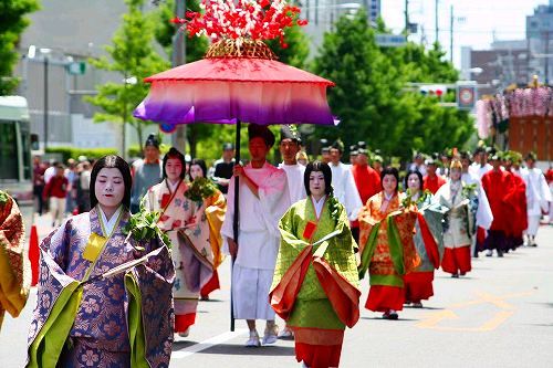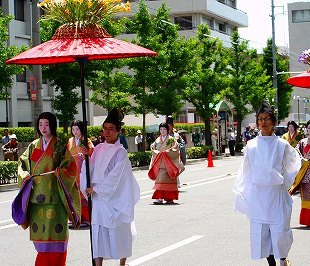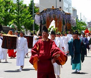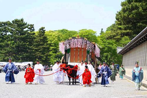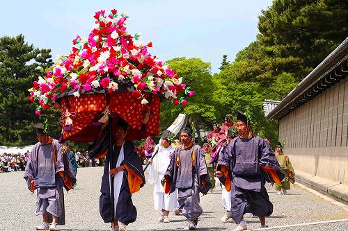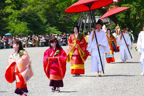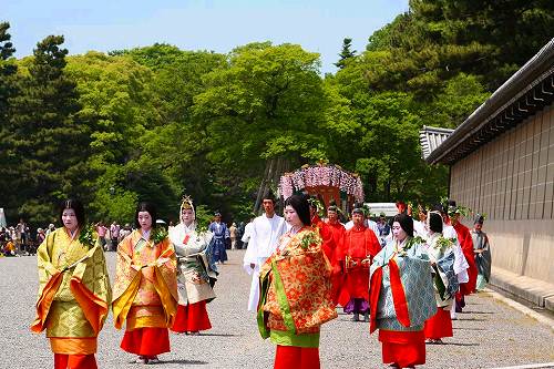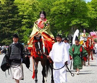 ![]() 葵祭は京都三大祭の一つ、平安朝の優雅な古典的な行列は平安貴族の姿で列をなし、 京都御所を出て、下鴨神社を経由して、上賀茂神社まで向かう行程です。 |