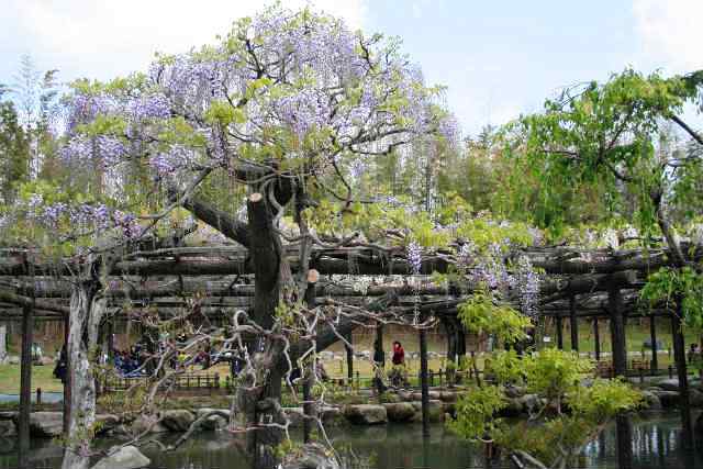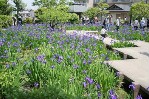 各池のカキツバタが一斉に開いたかと思えるほどで見事でした。根上り松も大きく立派です。