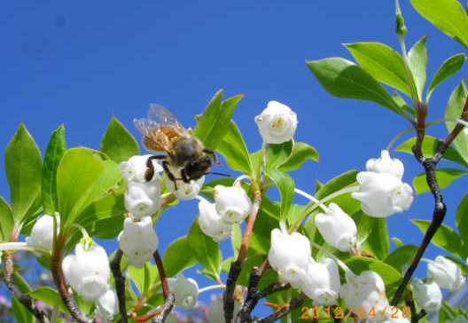![]() 庭の花「満天星とブルースカイー」 早朝から密集めに忙しい、頑張りやの蜜蜂さんもいますよ!! |