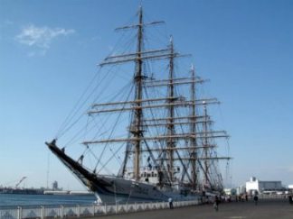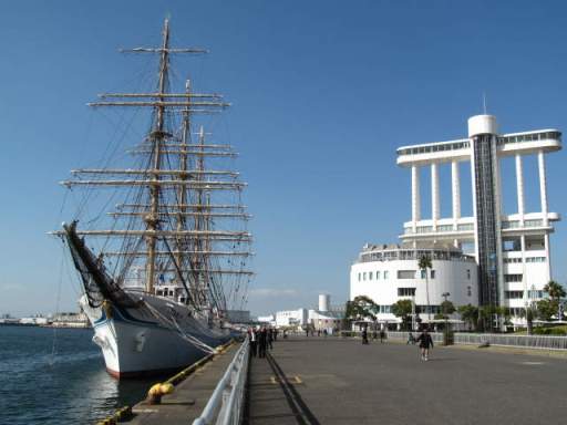 ![]() 名古屋港ガーデンふ頭に9日入港13日出港予定の貴婦人「海王丸U」 船の大きさは全長約110m、全幅13.8m、メインマスト高さ43.5m(甲板からの高さ) |