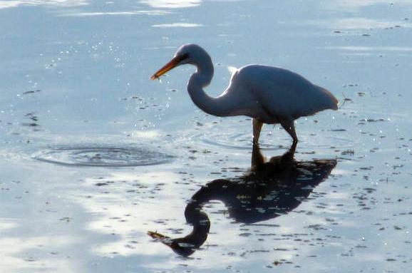 猫が洞池が工事のため水抜き状態で、シラサギが小魚を捕まえるスナップ写真が撮れました。