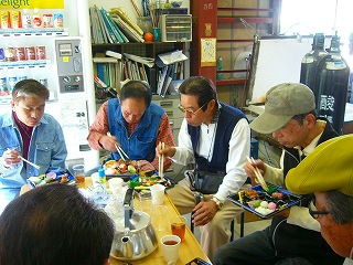ついつい人のが気になって、後ろの人達からいろいろ声が掛ります!手つきええがね〜! |