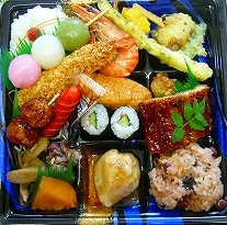 豪華な昼食:おいしかった? 桜の下で食べたかったが、風が強くて残念。 |