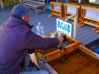 ![]() 地下30Mから汲み上げている(20L2本で100円) 500mlは只にしてくれました 一口飲んで美味い!管理人さんが「飲み口違うよ」 えっ! 汲んでいる水の口が違って、ホースの口がありました |
