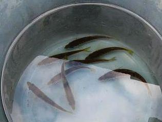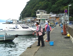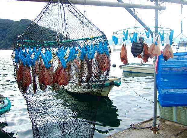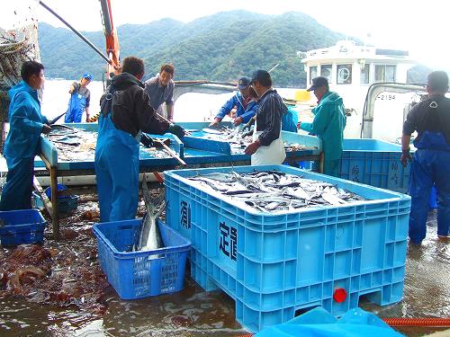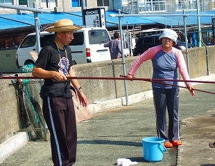![]() 水揚げされたばかりの魚です*足元にはクラゲが散乱 |