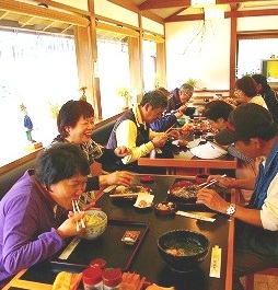 ![]() 昼食は「うそば」を食べた(うどんとそばを張り合わせた麺)*東口の道の駅で記念写真 |
