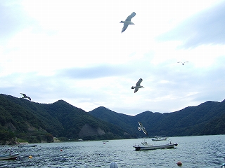 ![]() 漁師が捨てるアラを狙っているカモメ |
