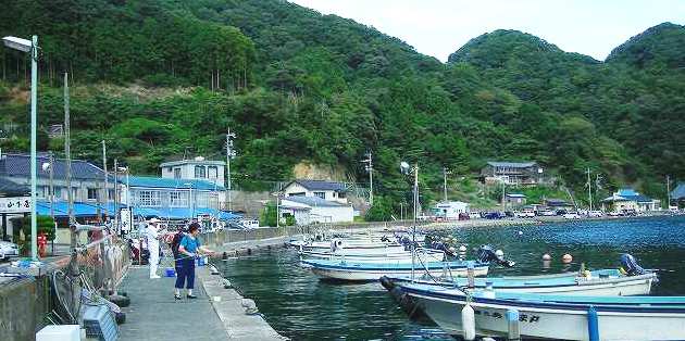 ![]() 漁港の雰囲気が漂う景色で子アジを釣り上げる |