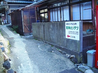 ![]() 案内板を見ながら狭い々路地を進むと、民宿「そてつの家」の庭?に現れる |