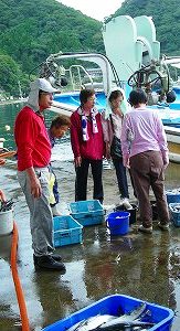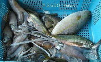 ![]() 市に卸す前に分けてくれる獲れたての魚!袋を持っていると小魚を入れてくれたとか。 |