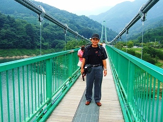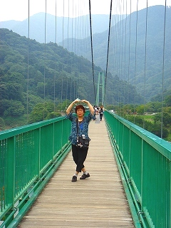 ![]() もみじ谷大吊橋では余裕のポーズ⇒ 奈良県十津川の「谷瀬の吊橋」は四つんばいでした! |