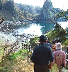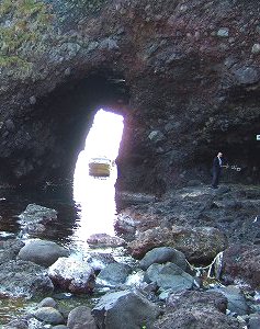 ![]() 《巌門》 波食によって形成された洞門。幅6m、高さ15m、奥行き60mにも及ぶ大規模なもの。 |