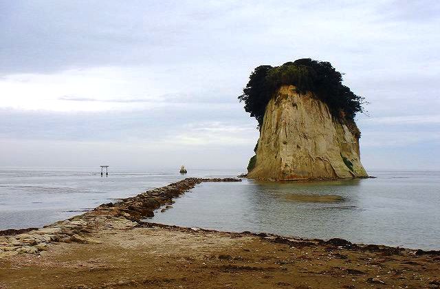 ![]() 《見附島》 石川県珠洲市にある無人島で、その姿から「軍艦島」とも呼ばれる。 弘法大師が佐渡から幽閉を解かれ、能登へ布教へ向かう折、最初に目に付いたといわれる。 |