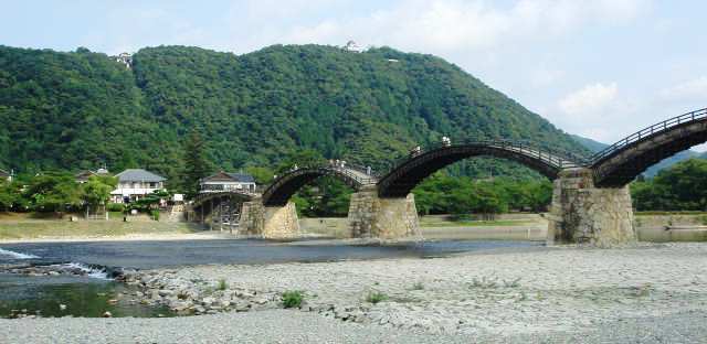 ![]() 日本三名橋のひとつ「錦帯橋」 他に例を見ない特異な姿の五連の反り橋 |