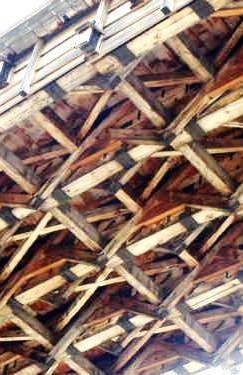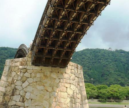![]() 反り橋の構造は、頑丈な組木の技法により、橋上からの圧力で更に強度が増す仕組みとなっています。 |