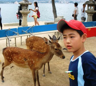 ![]() 宮島へは船で移動。上陸すると鹿のフンがお出迎え! |