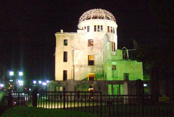 ![]() 元安橋から原爆ドーム 元安橋が架け替えられる際、親柱は被爆当時のものがそのまま使われました。 原爆の熱線 で傷ついた多数の被爆者たちが水を求めて元安川まできて亡くなったそうです。 |