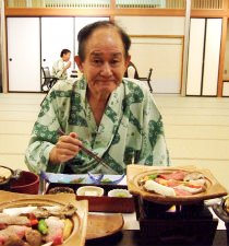 ![]() 食事の用紙に『松風の夢に障らぬ(触らぬ)午寝かな』・・・松の木の下で、ここち良い風を頬に受けて昼寝をしている様子! 今回の旅は夢のようです、正にこの句のような一日でした「乾杯〜!」 蔵王牛に舌鼓 |