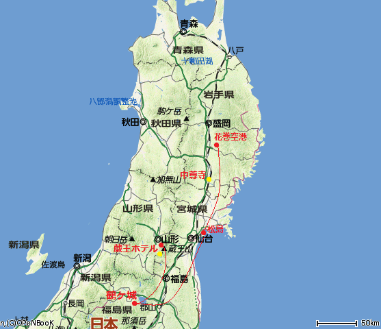 松島>鶴ヶ城公園>蔵王温泉バス460km