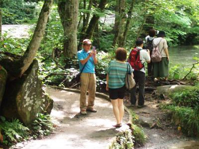 ![]() 渓流には遊歩道が整備されており、渓流沿いにはいくつもの滝が点在する。 |