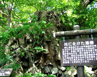 ![]() 「柱状節理」 熔岩などが冷却して六角形の柱のような形になっています 昼食11:00〜 |