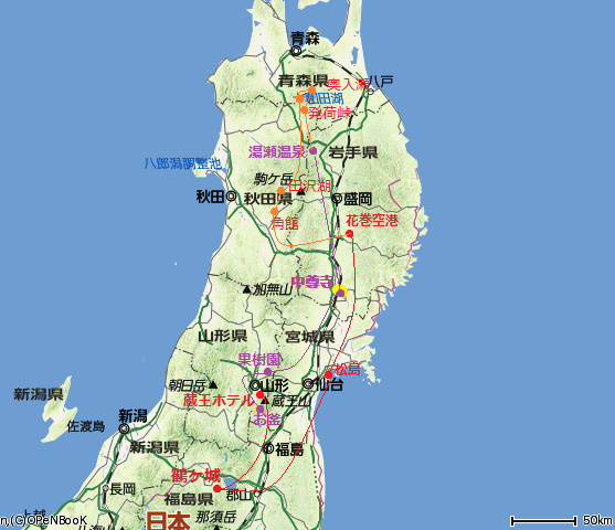 ![]() 湯瀬温泉「姫の湯」スタッフの見送りを受けて発荷峠に向かう。 ホテルから十和田湖まで約50km北上して十和田湖へ! |