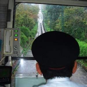 ![]() 雨の中「笠松公園」までケーブルカーに乗車 |