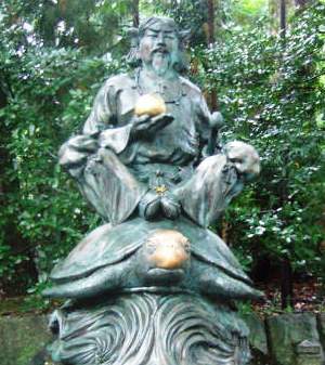 ![]() 倭宿禰命(やまとのすくねのみこと)は籠(この)神社代々の宮司(ぐうじ)である海部(あまべ)氏の第四代目。 明石海峡に亀に乗って現れ、神武天皇を浪速や河内、大和の国へ先導した人物。 |