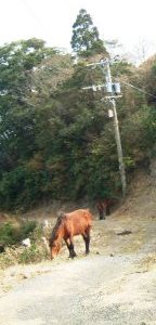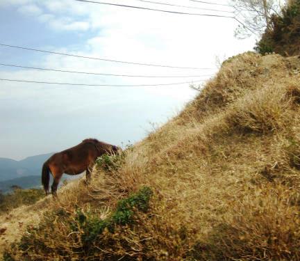 ![]() 野生馬は江戸時代に高鍋藩が軍用馬飼育のため放牧を始めたものが、後に半野生化したものである。 |