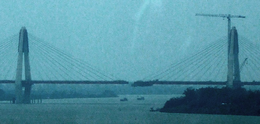 ![]() 14:25 無事入国審査を終えて、現地ガイドさんと合流! ハノイに着きバスに乗り込み、車窓に映る工事現場が、益々発展を遂げる若いベトナムが見えます。 そして、ホン川(紅河)を渡るとハノイ市内。 |
