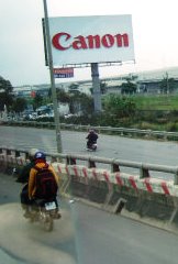 ![]() さー!市内観光にGO! ベトナムには日本企業が多く入り、支援もしていることが看板から良く分かりました。 |